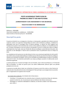 Vacance pour un poste académique temps plein en théorie du droit et des institutions.